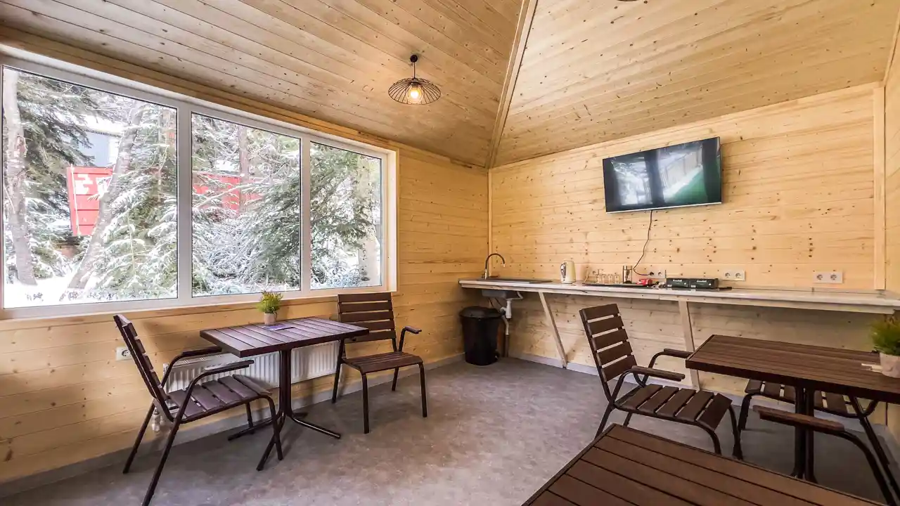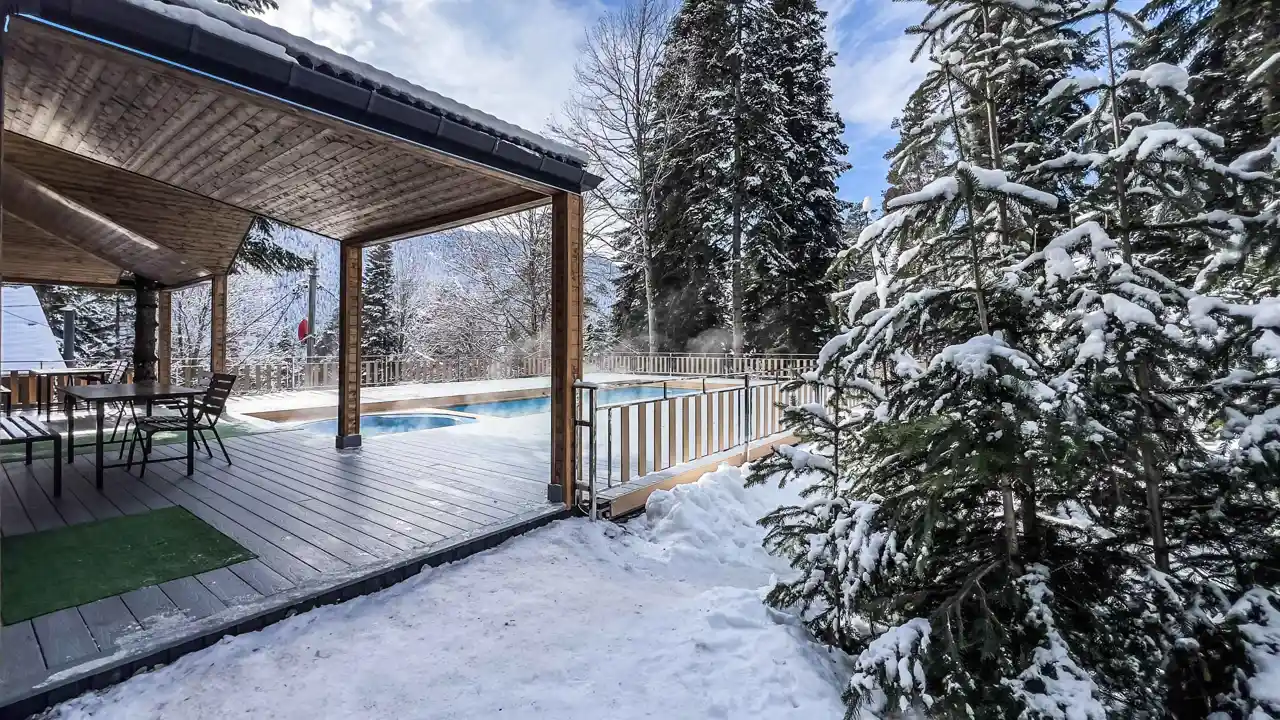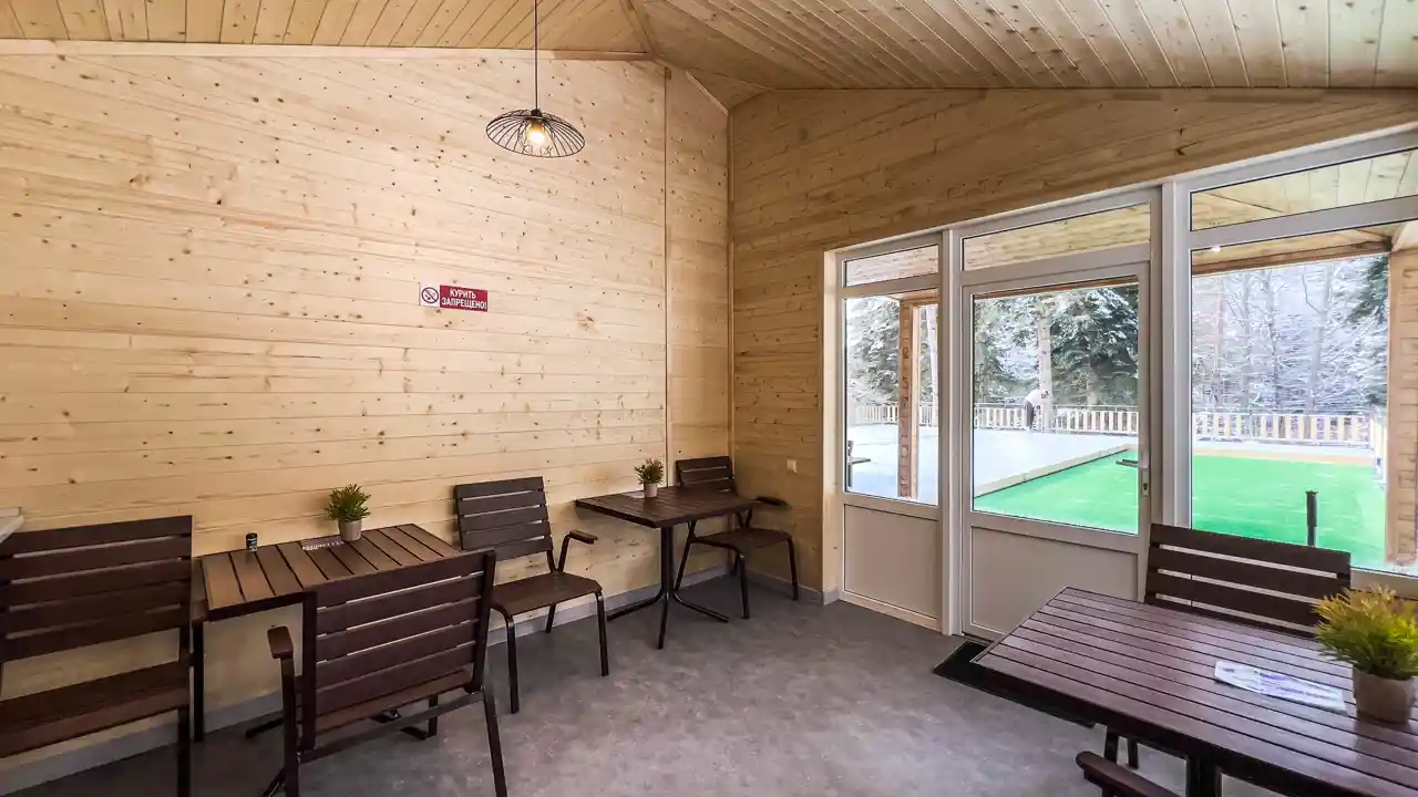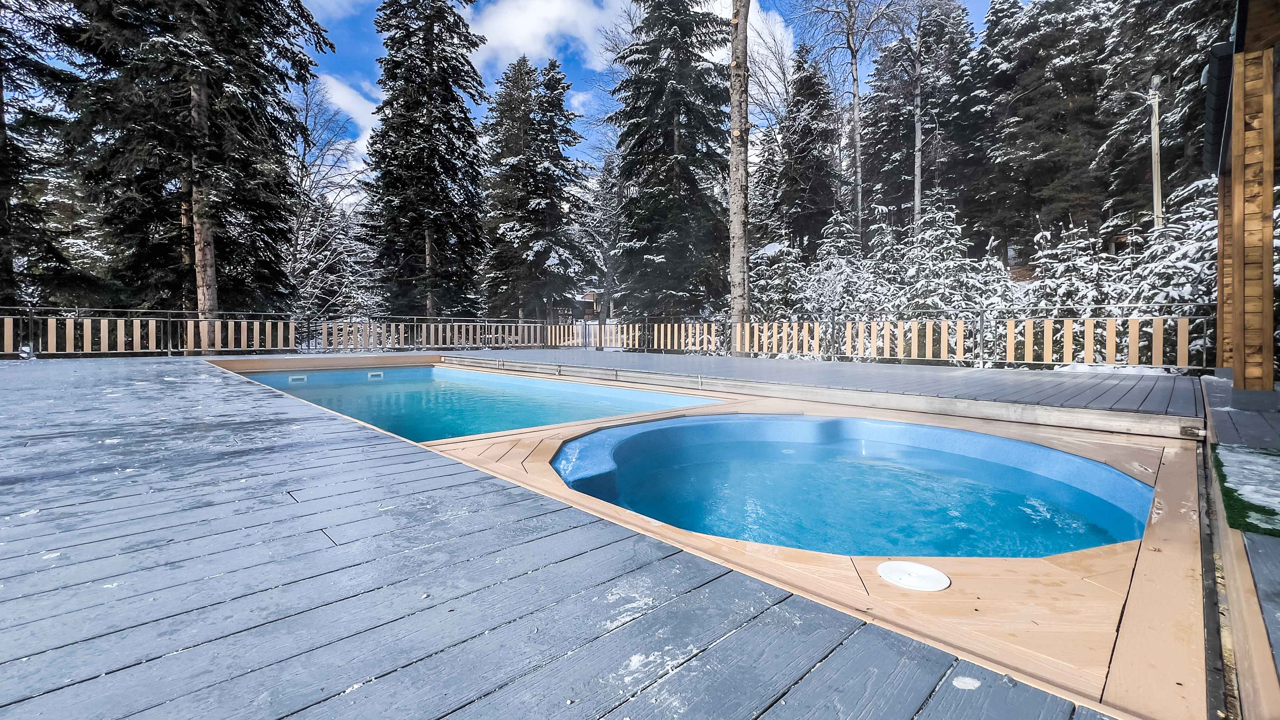Просторный открытый бассейн гостеприимно распахивает свои объятия для больших семей и дружных компаний. Здесь каждый найдет себе место под солнцем, наслаждаясь ласковым теплом воды, которое особенно приятно в прохладные горные дни.